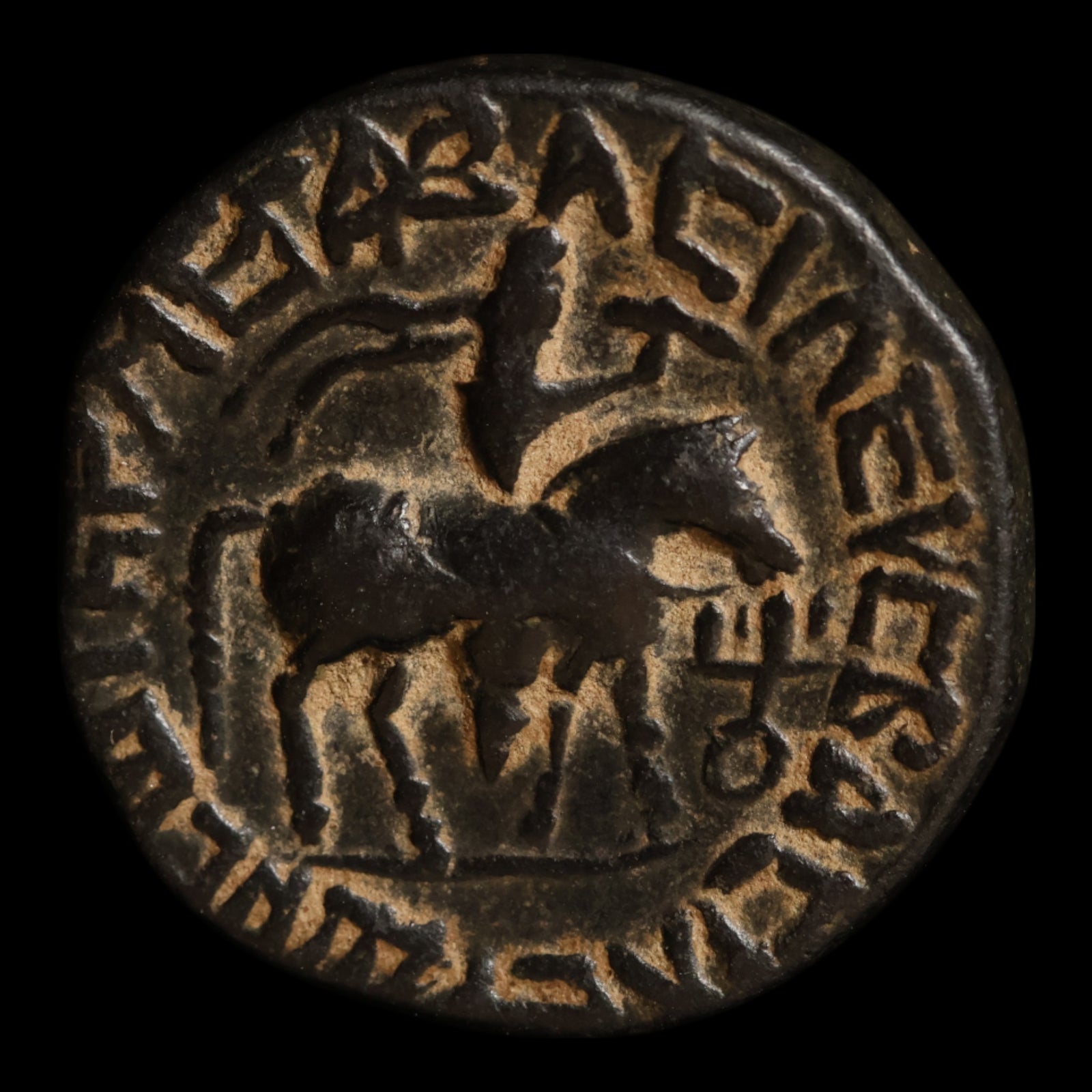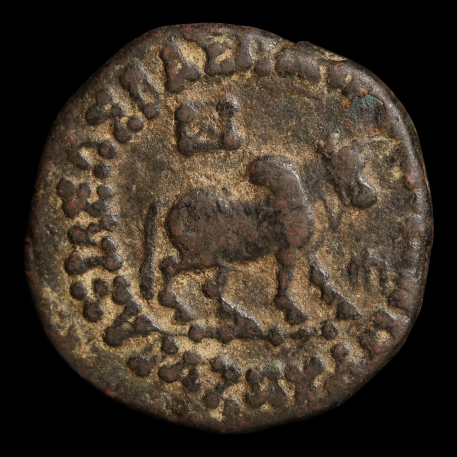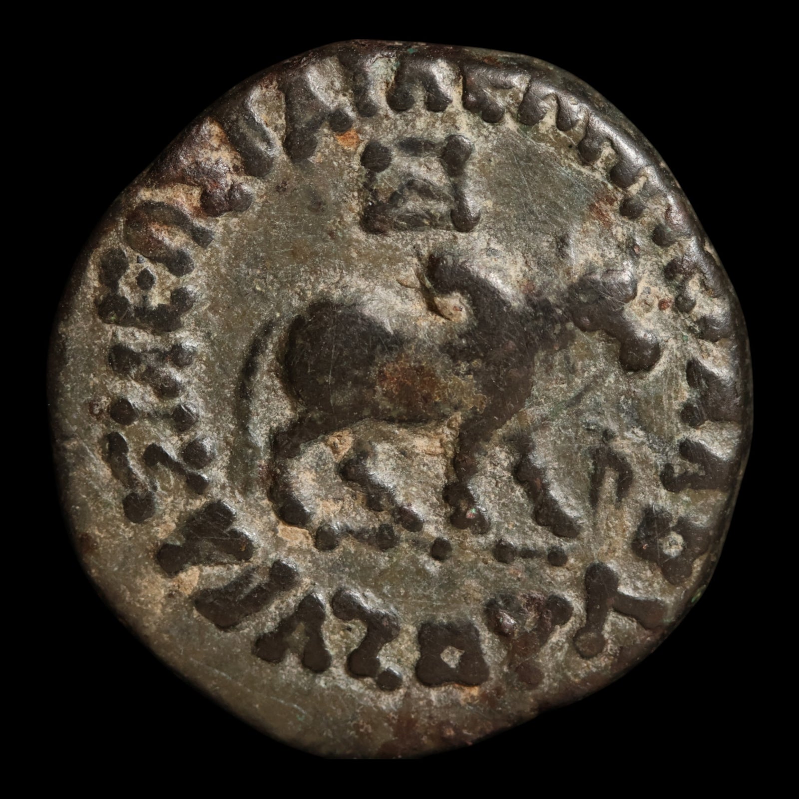 Indo-Scythians, Azes I, AE Tetradrachm (Humped Bull & Lion/Leopard)