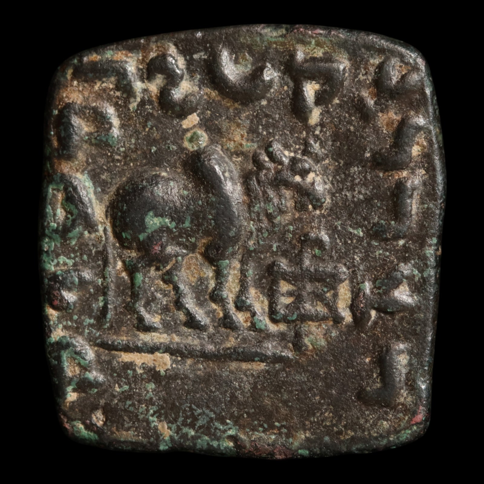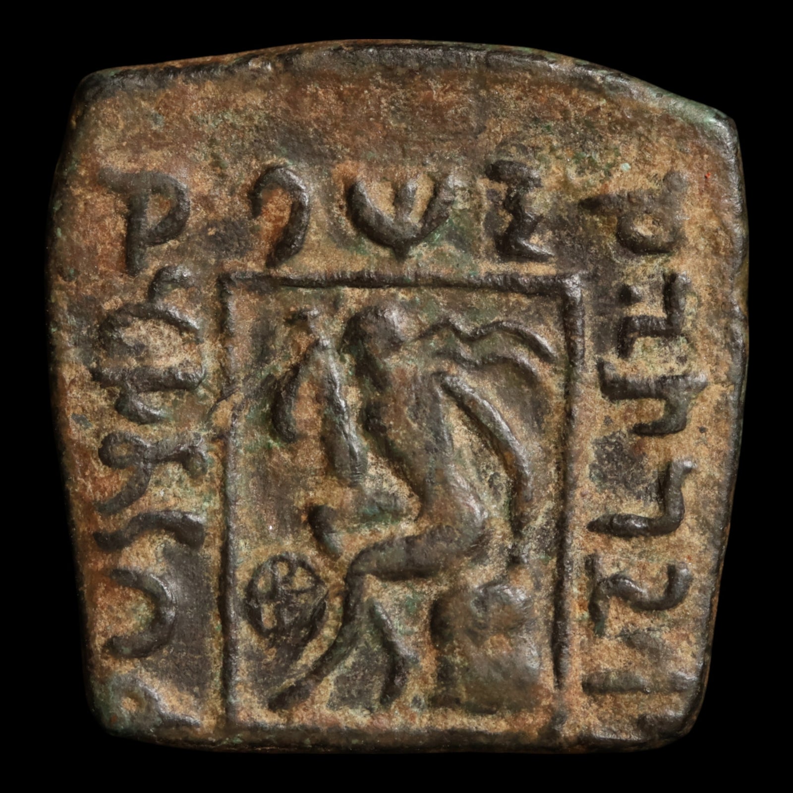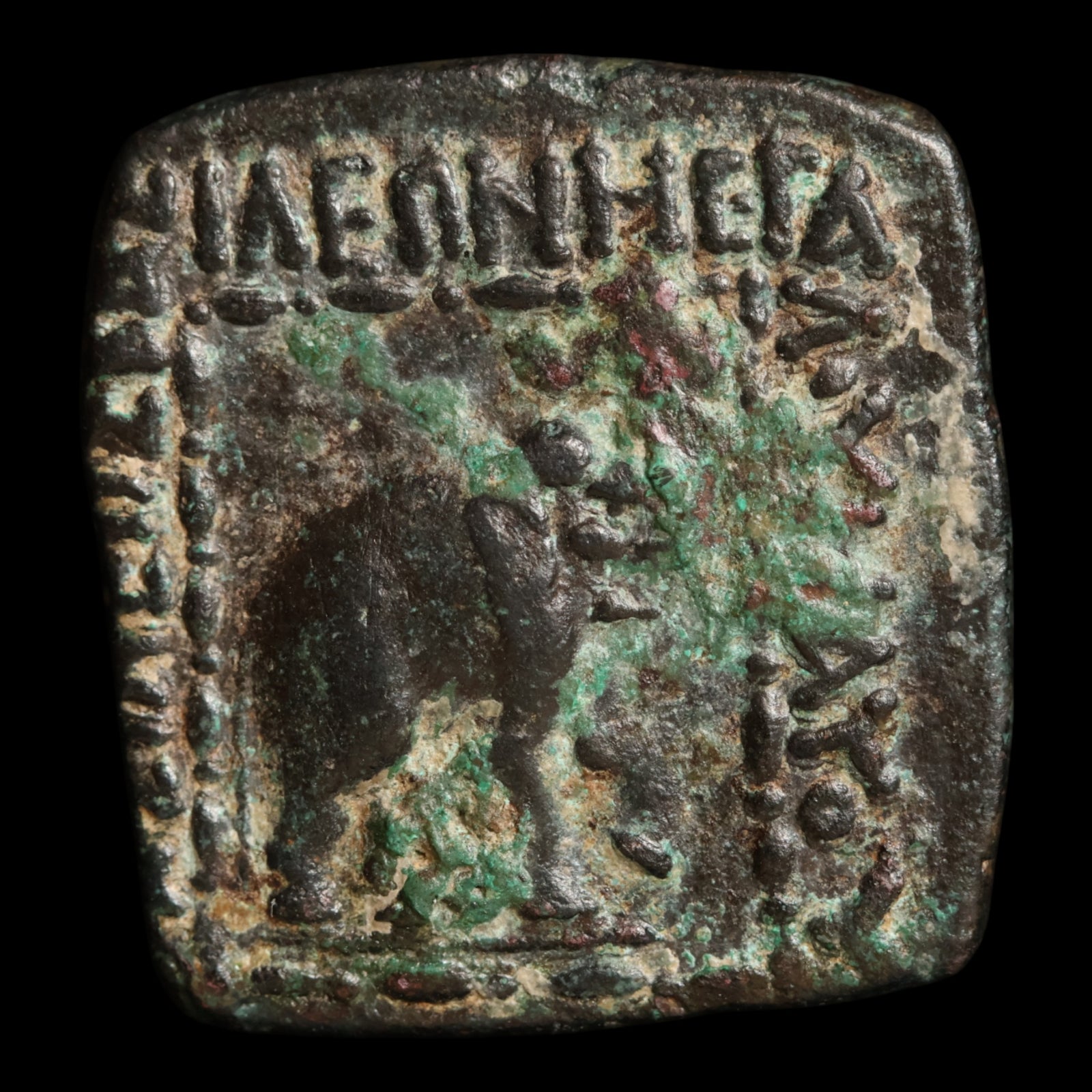 Indo-Scythians, King Maues, AE Square Hemiobol (Elephant & Humped Bull)