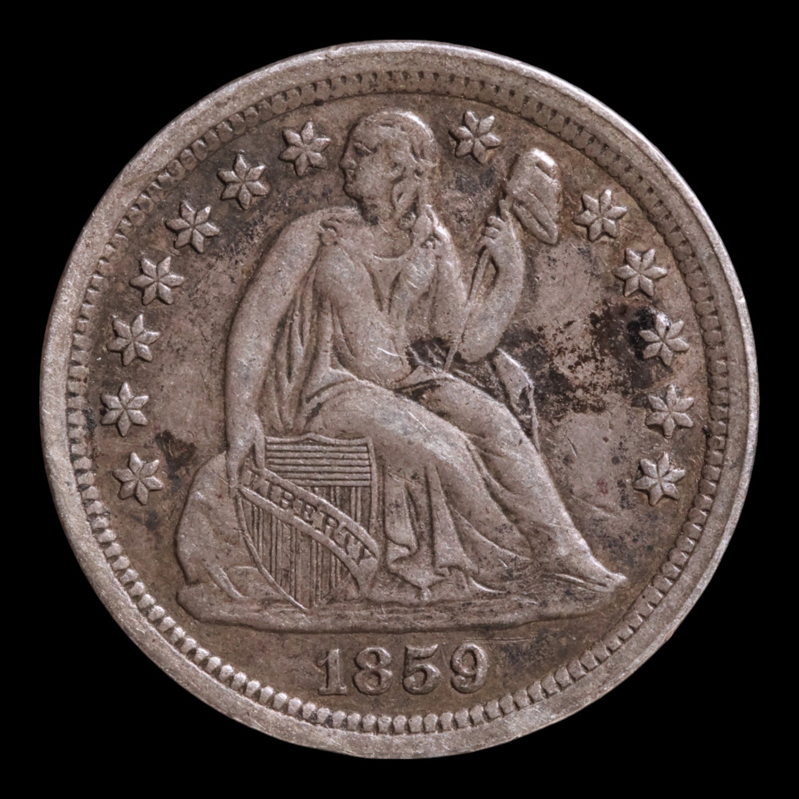 Victorian Era Love Token, Carved Onto U.S. Seated Liberty Dime