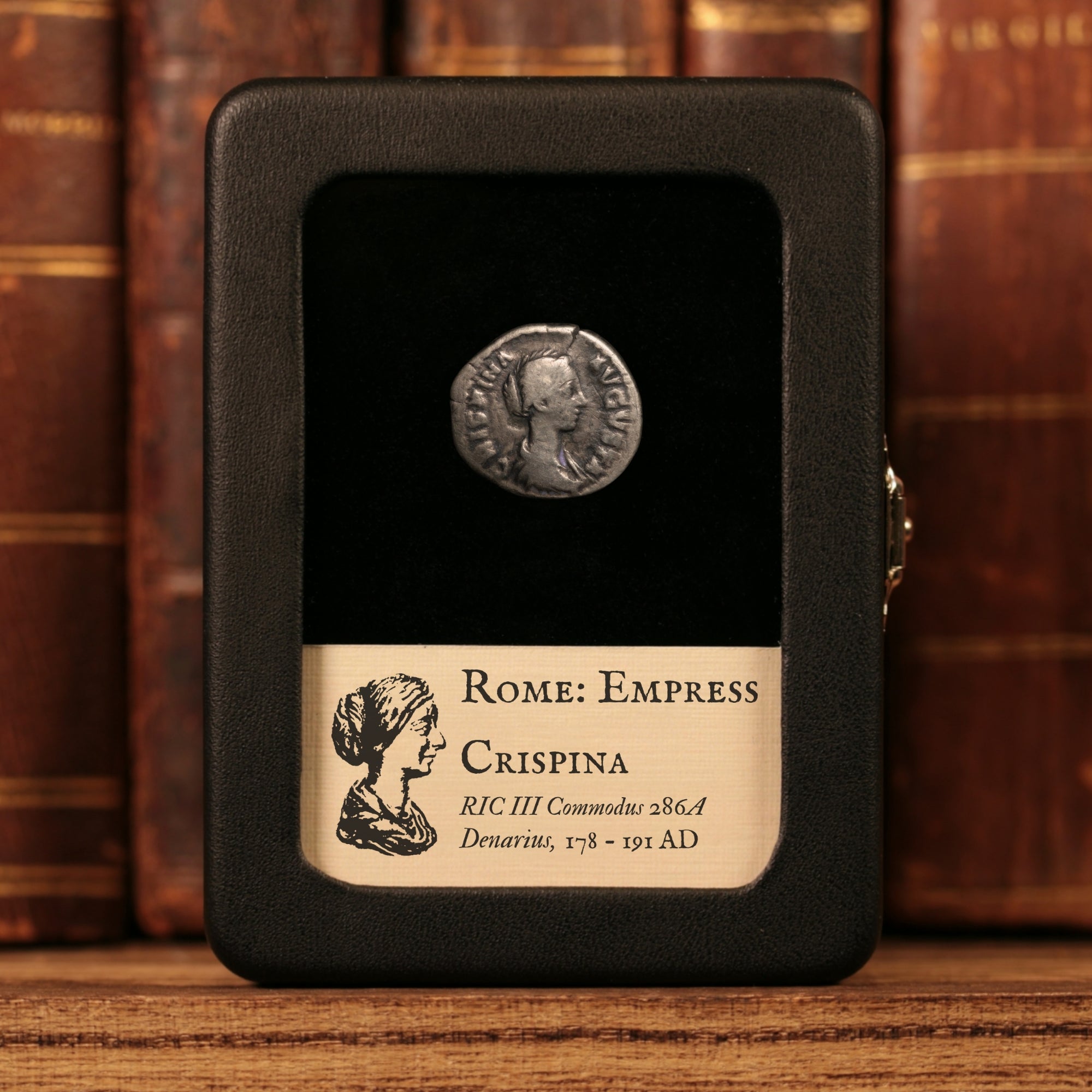 Our original glass and leatherette display boxes showcase your relic above a custom information card, with a design unique to History Hoard.