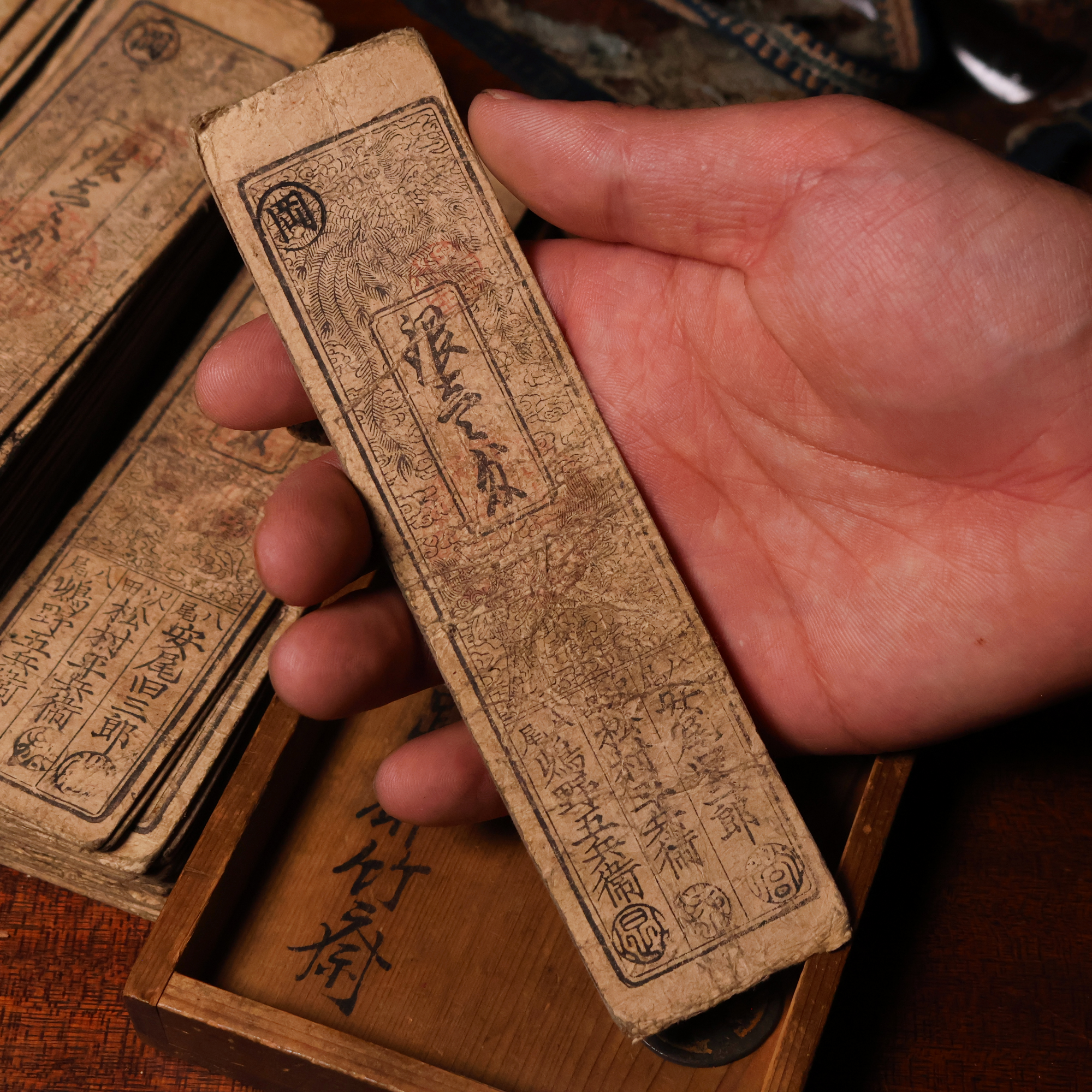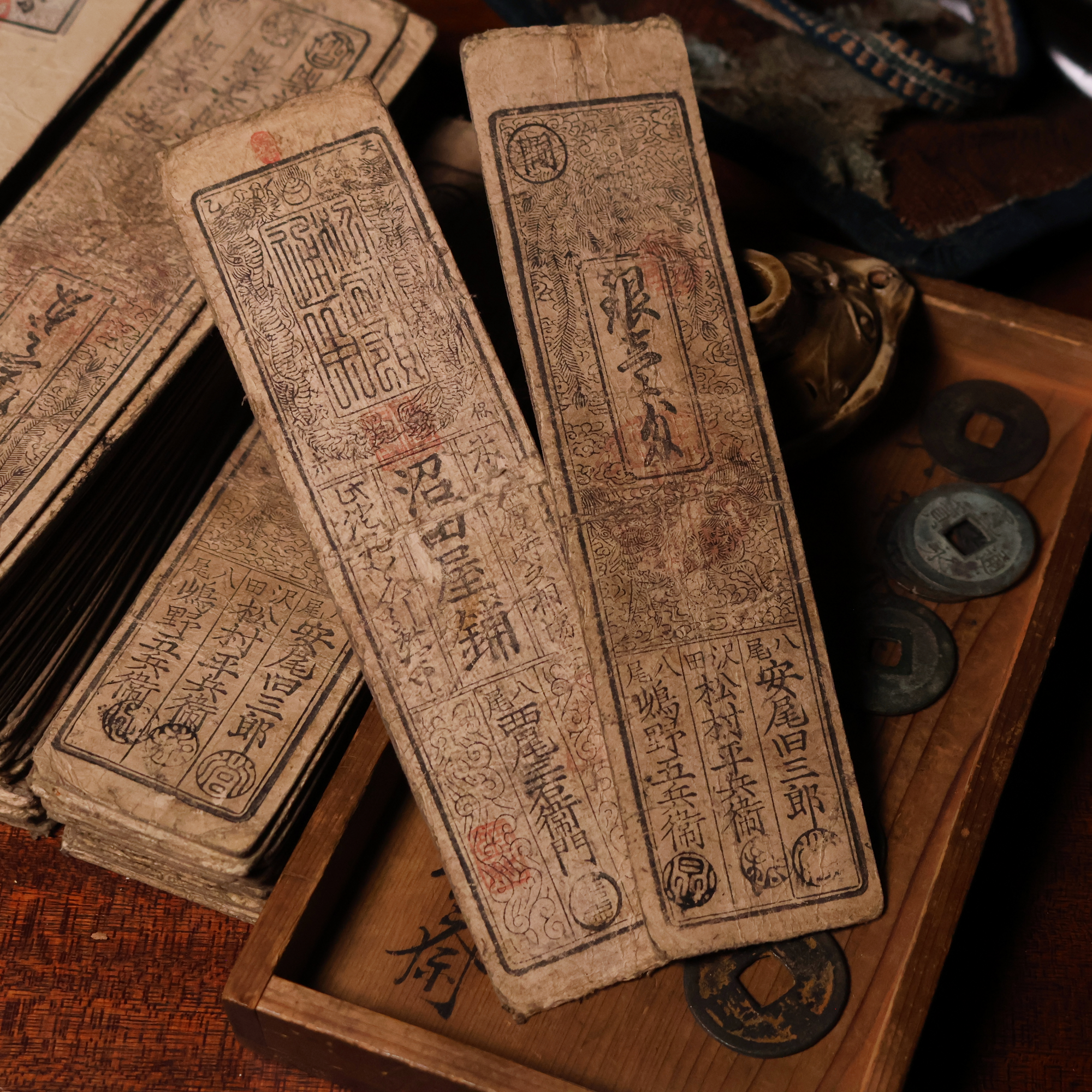 Paper hansatsu (藩札) scrips were a staple currency during Japan's Edo Period, which lasted from 1603 to 1867 CE. These notes were issued by local feudal rulers to supplement coinage, and were typically redeemable for silver, gold, copper, or even commodity goods like rice.
