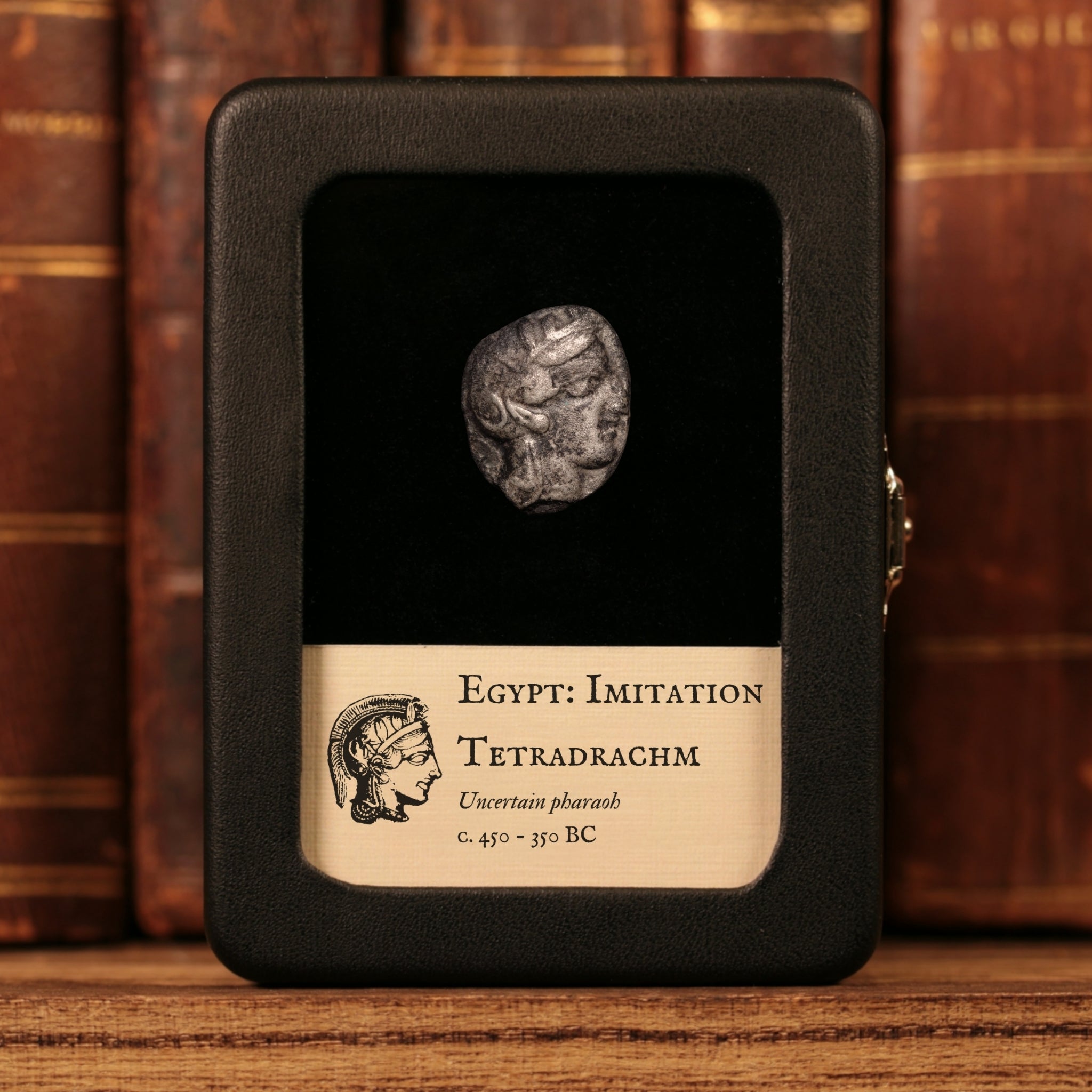 Our original glass and leatherette display boxes showcase your relic above a custom information card, with a design unique to History Hoard.