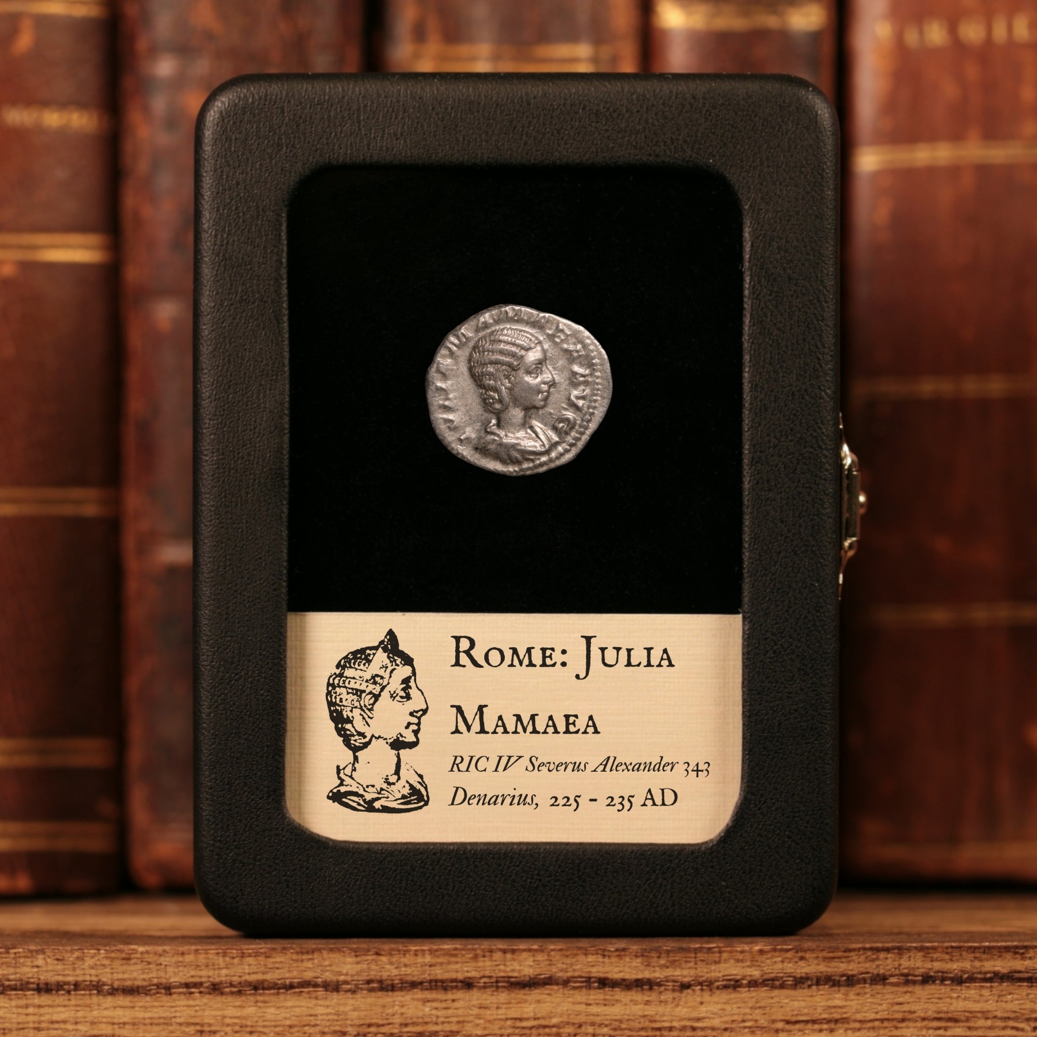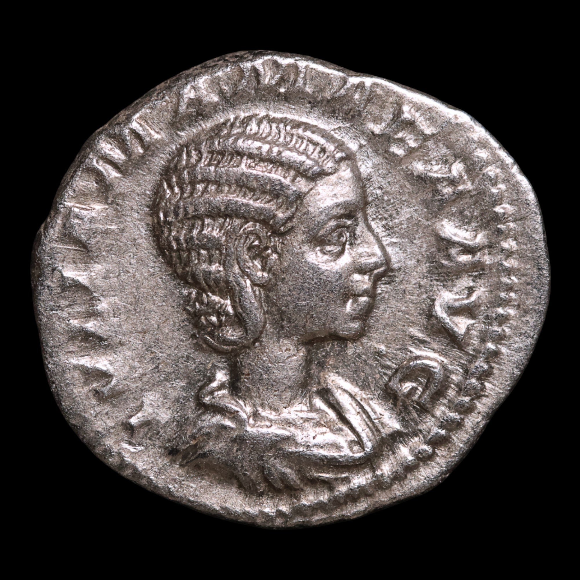 • Obverse: IVLIA MAMAEA AVG - Bust of Julia Mamaea, draped, right