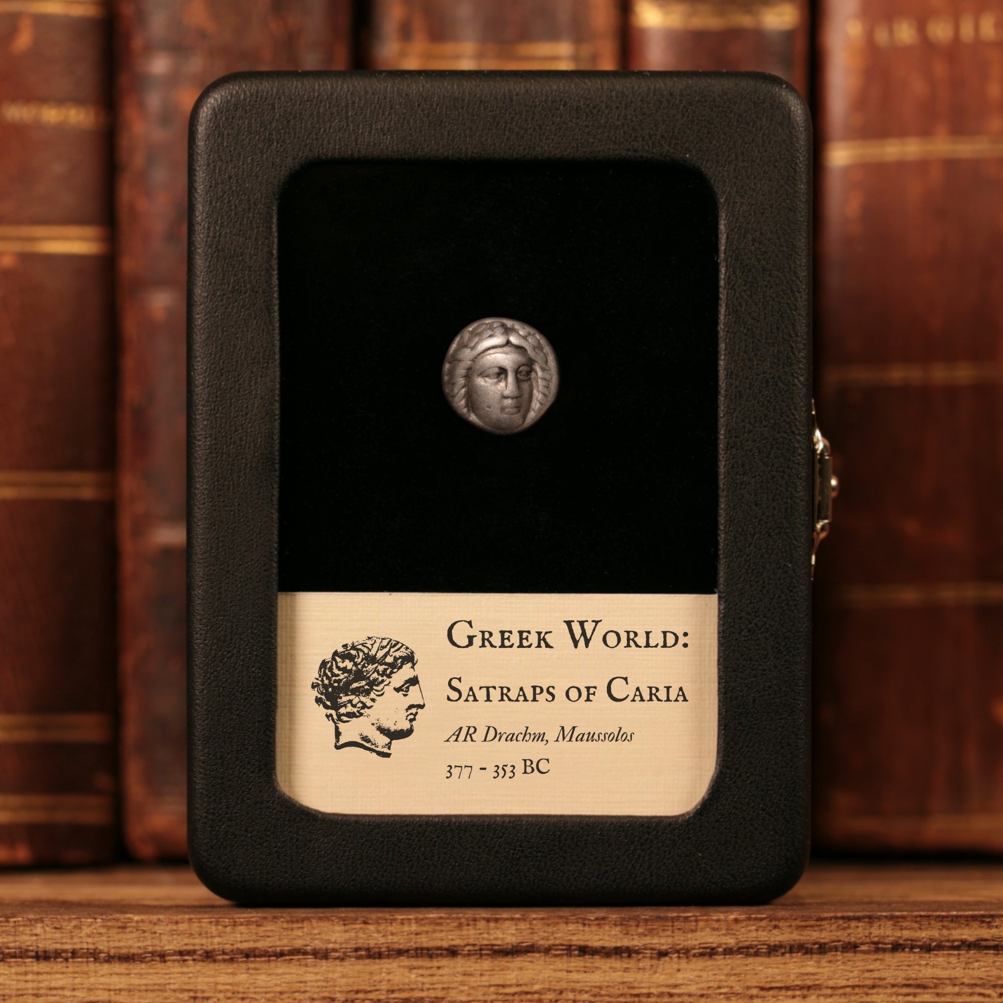 Our original glass and leatherette display boxes showcase your relic above a custom information card, with a design unique to History Hoard.