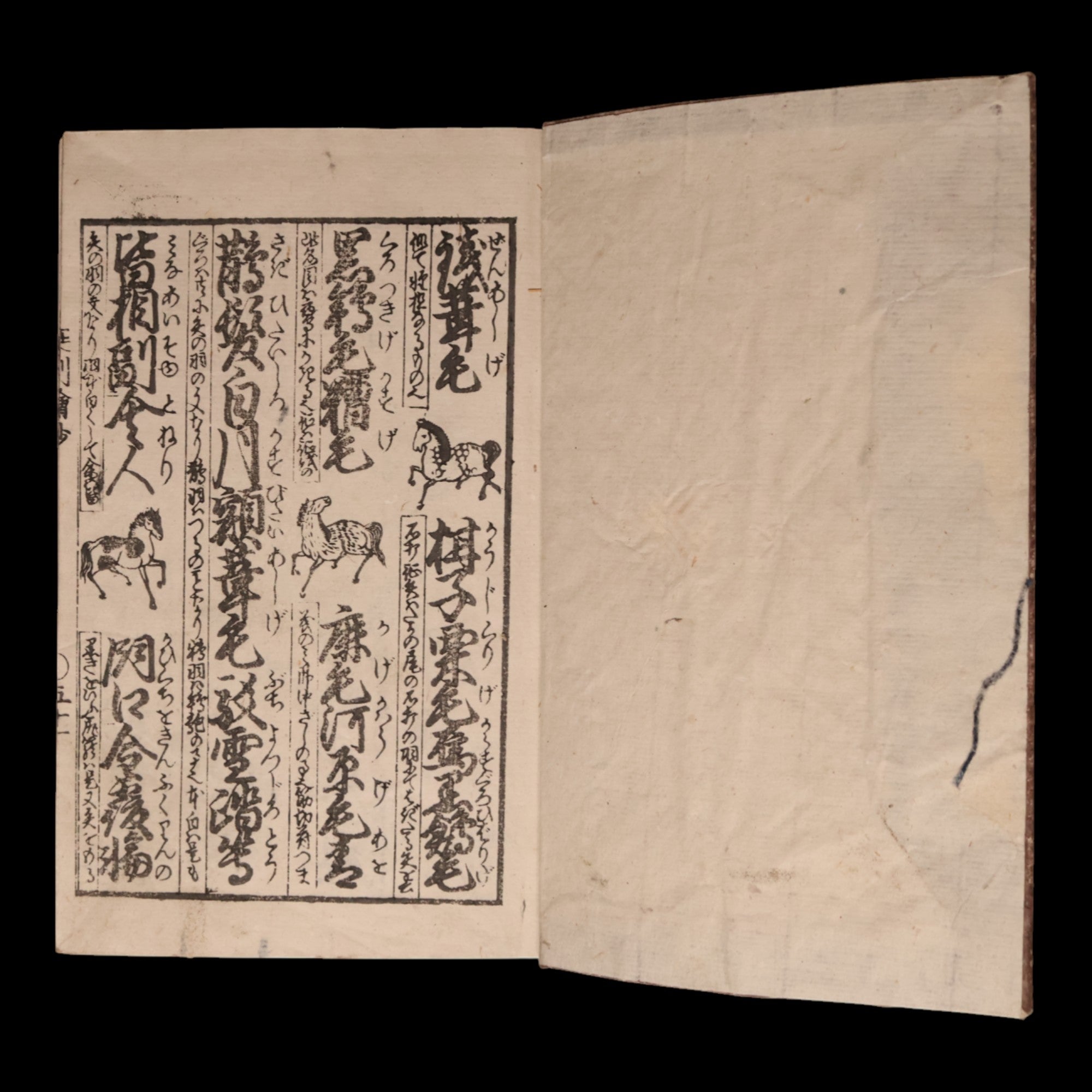 Japanese books are read right to left (instead of left to right) and are bound on the right side, contrary to those in Western languages. The pages may be double layered, and care must be taken to ensure that they do not separate when flipping through. The book must be stored in a cool, dry place away from direct sunlight and out of reach of bugs.