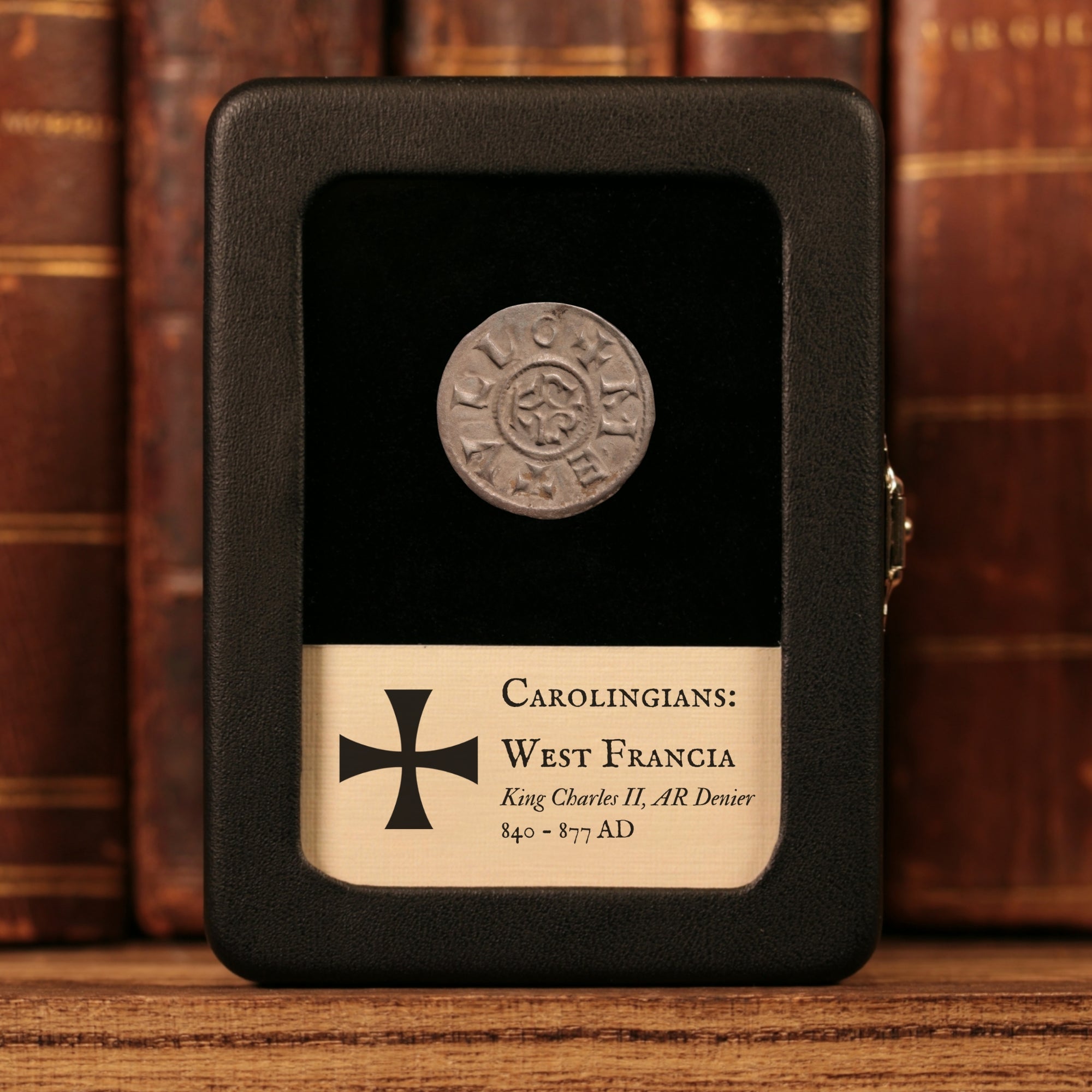 Our original glass and leatherette display boxes showcase your relic above a custom information card, with a design unique to History Hoard.