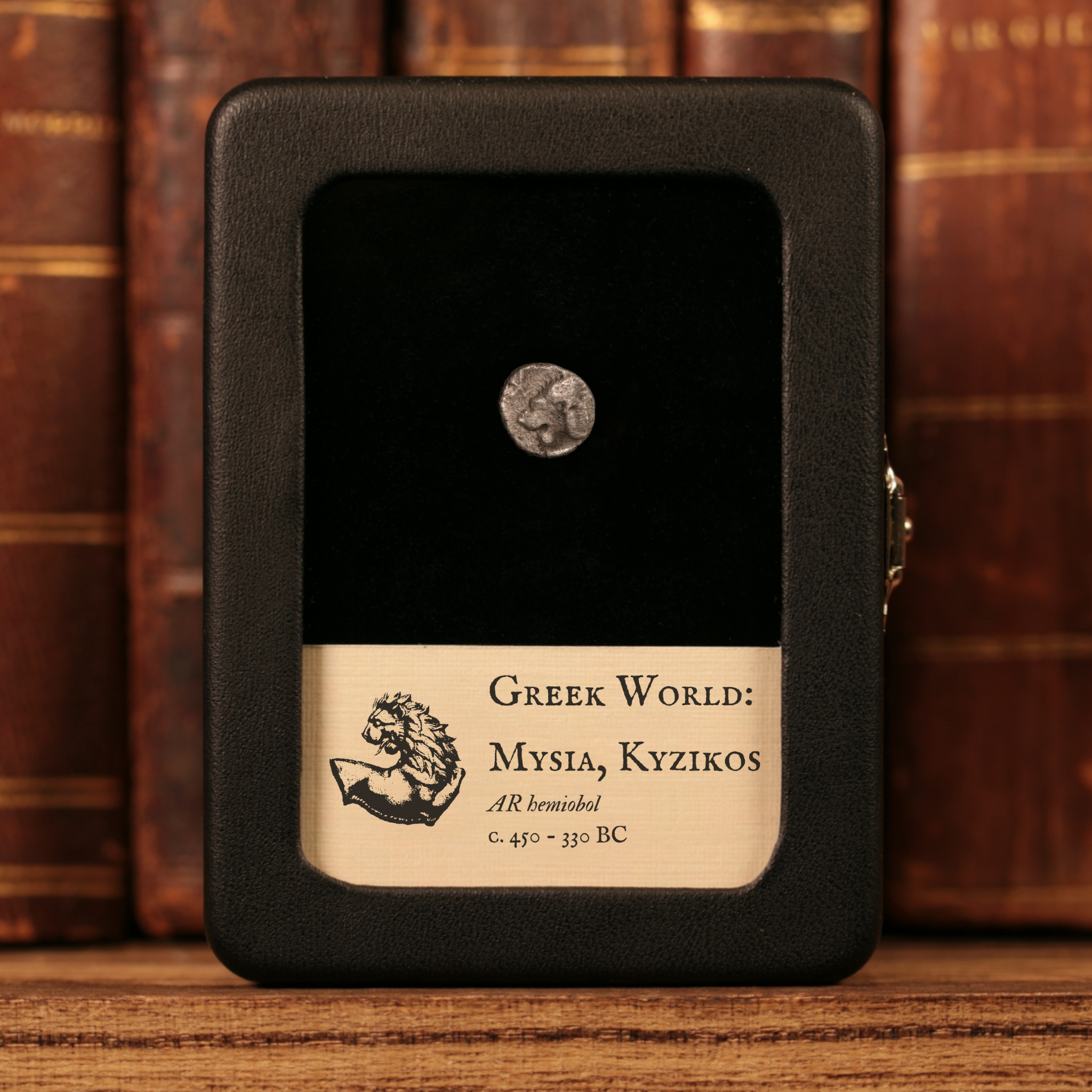 Our original glass and leatherette display boxes showcase your relic above a custom information card, with a design unique to History Hoard.