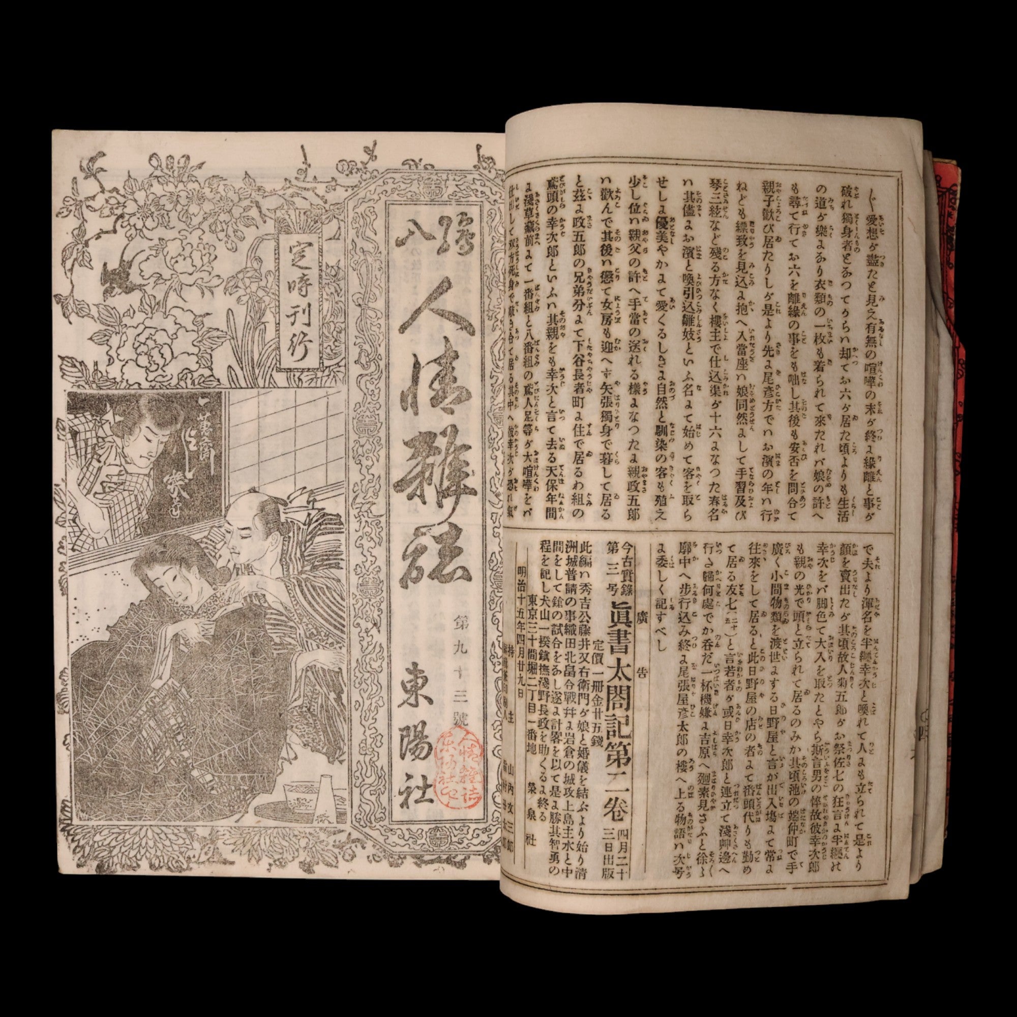 Japanese books are read right to left (instead of left to right) and are bound on the right side, contrary to those in Western languages. The pages may be double layered, and care must be taken to ensure that they do not separate when flipping through. The book must be stored in a cool, dry place away from direct sunlight and out of reach of bugs.