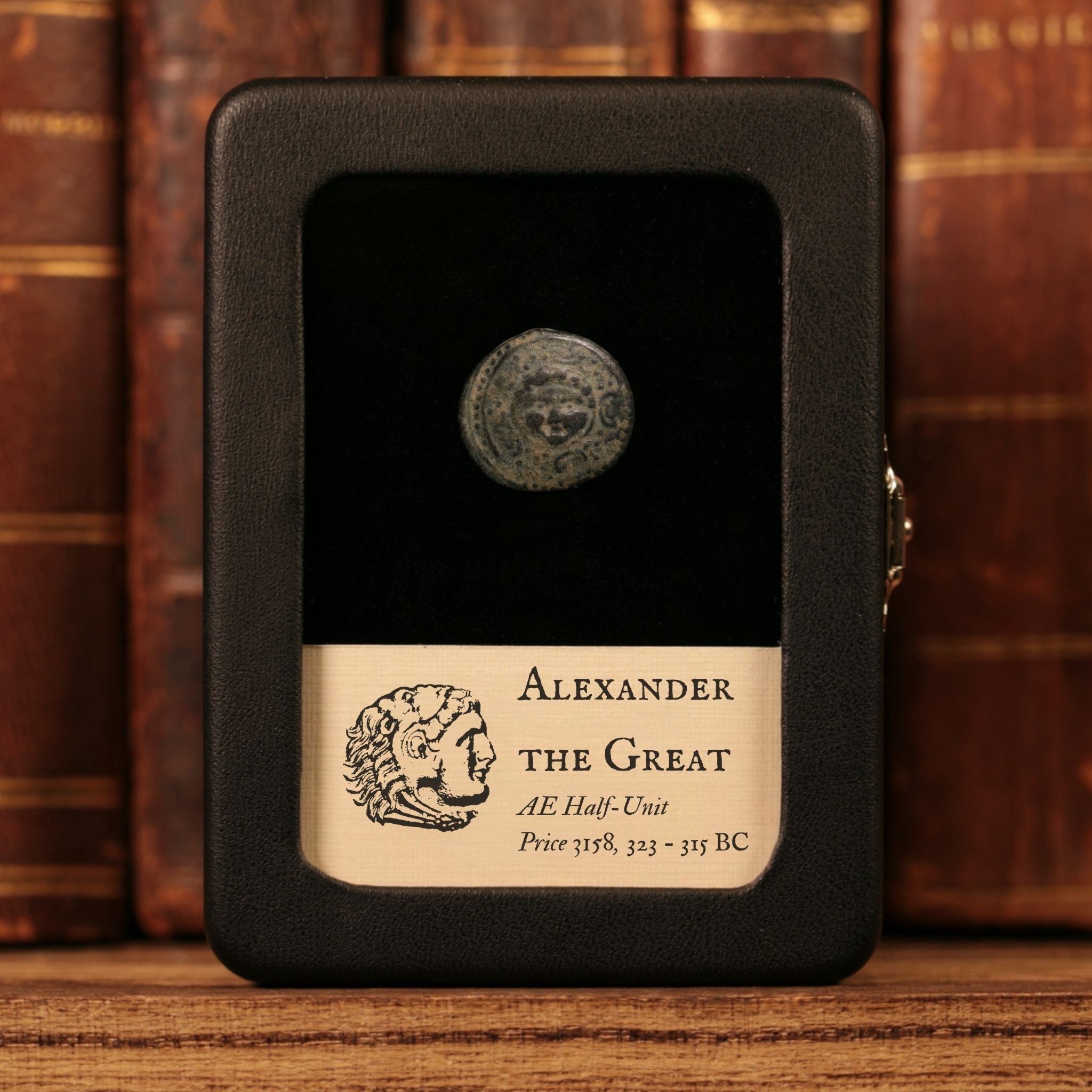 Our original glass and leatherette display boxes showcase your relic above a custom information card, with a design unique to History Hoard.