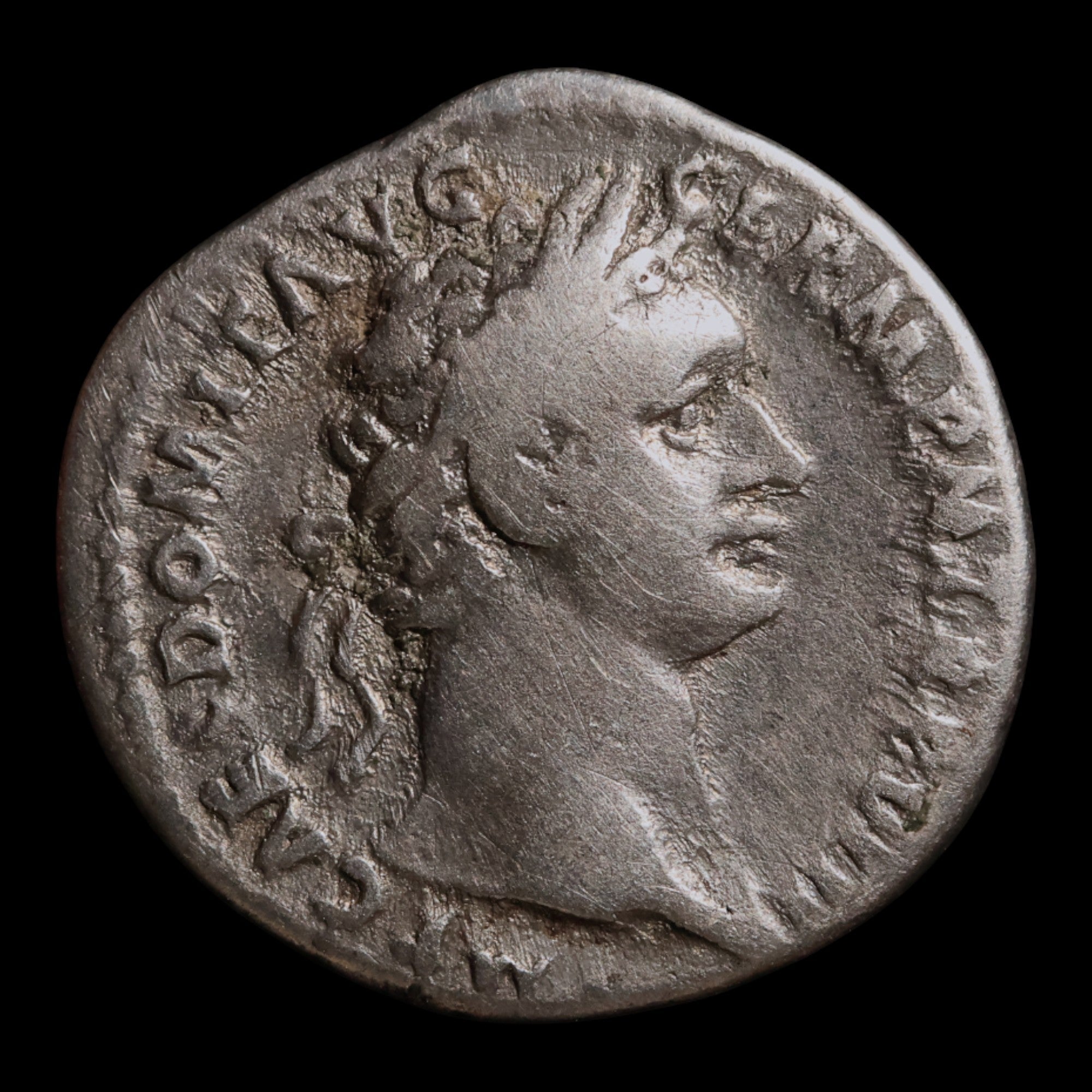 • Obverse: IMP CAES DOMIT AVG GERM P M TR P VIII - Head of Domitian, laureate, right